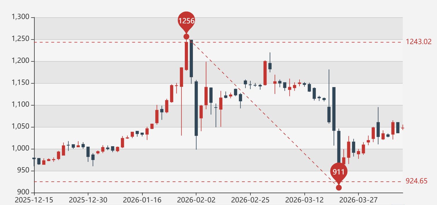 每经记者注意到,2026年伊始,上海黄金交易所现货黄金Au99.99持续走强,1月底一度冲高至1256元/克的历史新高,随后进入阶段性回调;3月下旬,中东地缘冲突升级,美联储降息预期下降,金价大跌,一度触及911元/克的阶段低位。不过,从历史趋势来看,当前金价仍处于历史高位区间,整体维持高位震荡走势。